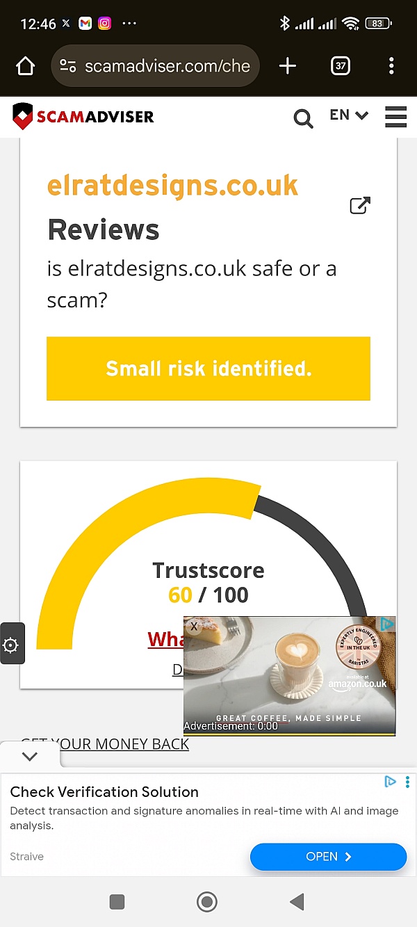 Scamadviser helps consumers making their online shopping decisions by rating websites with the Scamadviser Trust Score. The algorithm of Scamadviser utilizes 40 independent data sources. From the IP address of the webserver, the availability of contact details on the website, the age of the URL, ratings on review sites, and much much more.
